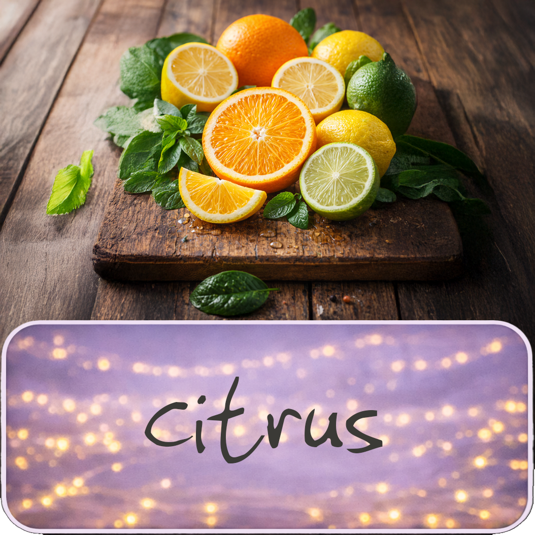 Citrus fragrances are bright, cheerful, and refreshing. Notes like lemon, orange, grapefruit, and bergamot add a clean, uplifting energy to any space. These scents feel crisp and lively, perfect for adding a little sunshine and freshness to everyday moments.