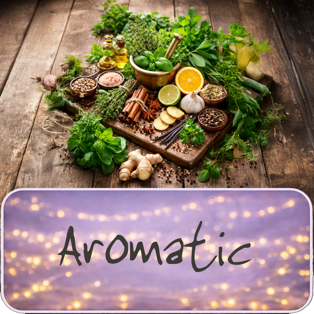 Aromatic fragrances feel fresh, herbal, and naturally calming. Notes like eucalyptus, rosemary, basil, mint, and pine create scents that are clean and invigorating without being sharp. These blends are grounding and restorative, bringing the feeling of fresh air and quiet clarity into your home.