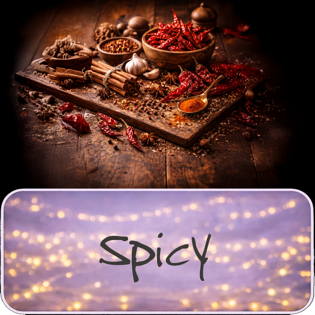 Spicy fragrances are warm, expressive, and quietly bold. They blend gentle heat from cinnamon, clove, and nutmeg with brighter sparks of ginger, cardamom, and pepper. These scents feel confident and comforting all at once, adding depth and character without overpowering a space.